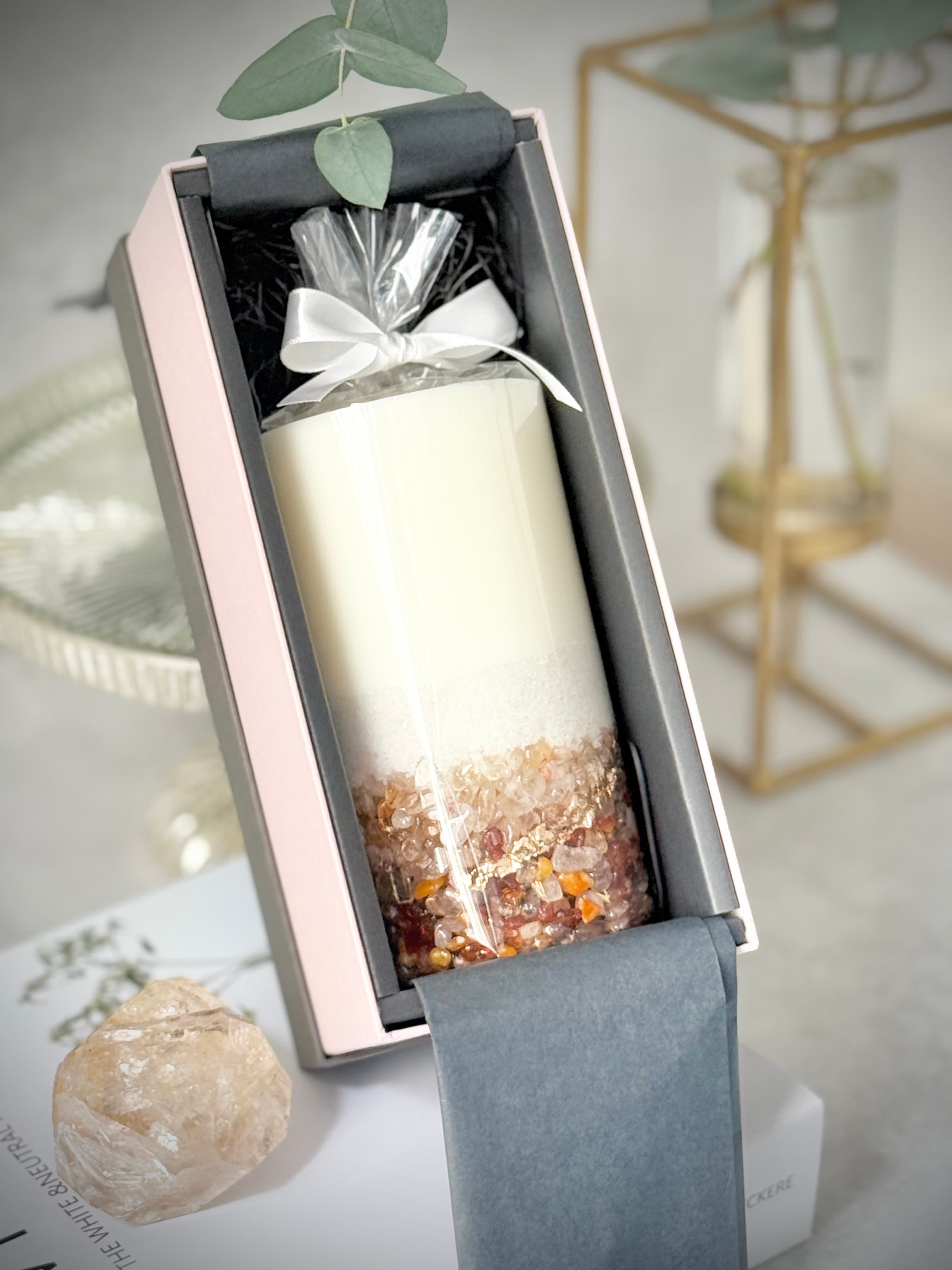 天然石の深い静けさが、光のように空間へ溶け込む 大切な想いを品よく託せる、キャンドルのフォルムを纏った静穏のオブジェです